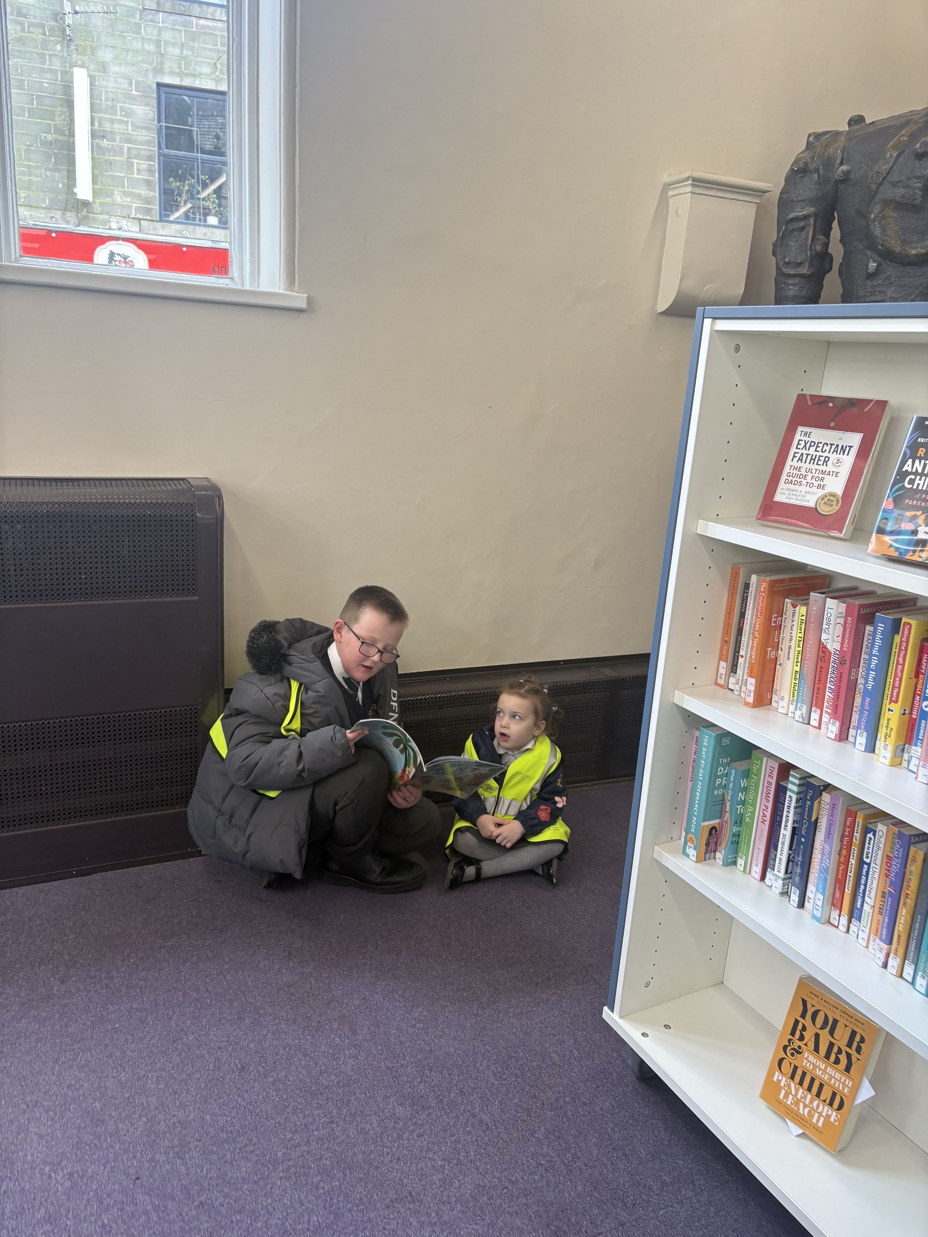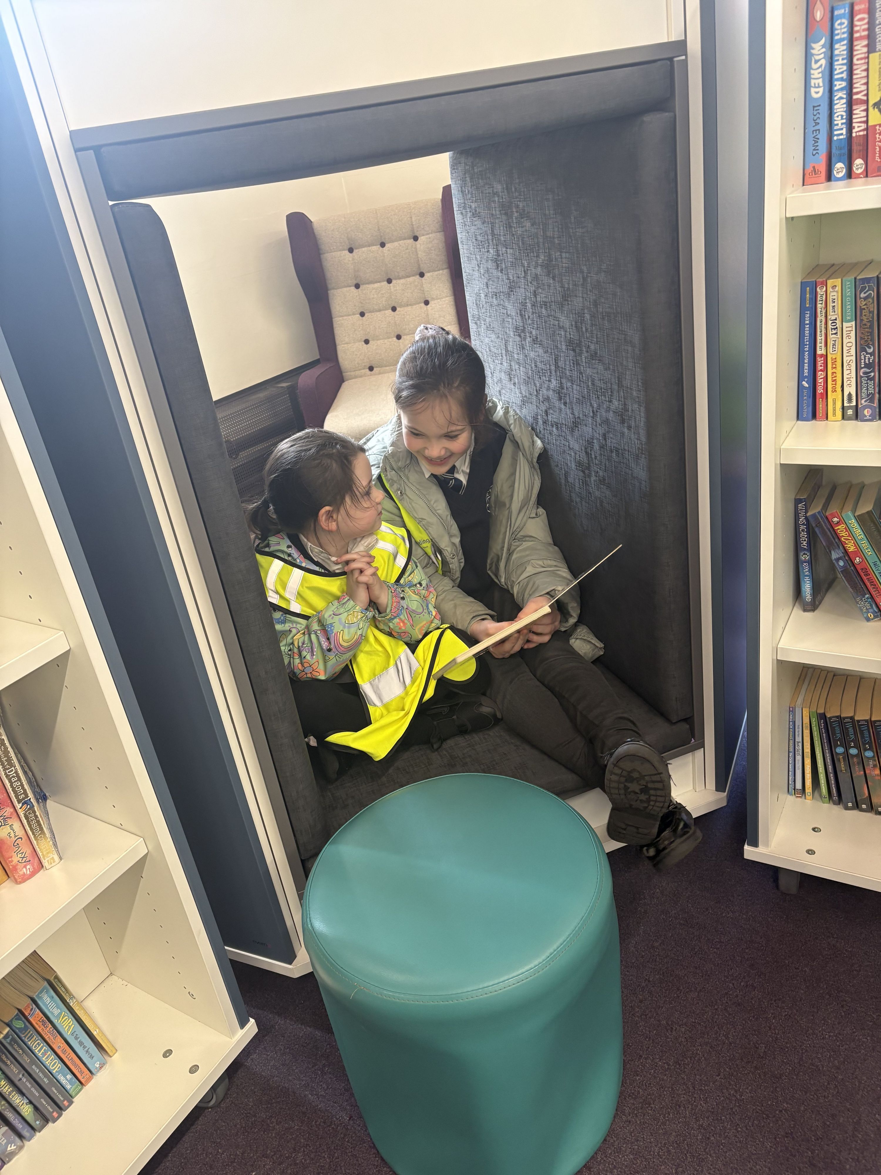 During the visit, the children explored the library together and were given the opportunity to choose a book to bring back to school. The older pupils supported and guided their younger partners, helping them to feel confident and engaged throughout the experience.